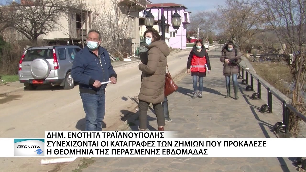 Συνεχίζονται οι καταγραφές των ζημιών από την έντονη βροχόπτωση και τις πλημμύρες της περασμένης εβδομάδες στον Έβρο. Κλιμάκιο της Διεύθυνσης Αποκατάστασης Επιπτώσεων Φυσικών Καταστροφών του Υπουργείου Υποδομών, βρέθηκε το πρωί της Τετάρτης στο Δήμο Αλεξανδρούπολης προκειμένου να γίνουν το συντομότερο δυνατό οι πρώτες εκτιμήσεις των ζημιών.