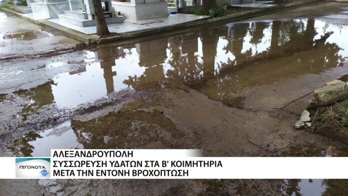 “Πλημμύρισαν” τα Β’ Κοιμητήρια Αλεξανδρούπολης μετά τη νεροποντή χθες το βράδυ. Οι πολίτες καταγγέλουν στο ΘΡΑΚΗ ΝΕΤ την άσχημη κατάσταση που επικρατεί στα νεκροταφεία, ενώ, ο αρμόδιος Αντιδήμαρχος, διαβεβαιώνειότι η αιτία της συγκέντρωσης νερού στο νεκροταφείο έχει εντοπιστεί και θα δοθεί λύση μέσα στη χρονιά.