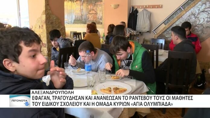 Για ακόμα μια χρονιά, οι μαθητές του ειδικού γυμνασίου αποδέχτηκαν την πρόσκληση της Εθελοντικής Ομάδας Κυριών «Αγία Ολυμπιάδα», της Μητρόπολης Αλεξανδρούπολης, και συμμετείχαν σε γεύμα σε γνωστή παραλιακή πιτσαρία της πόλης. Οι εθελόντριες κυρίες και οι μαθητές του Εργαστηρίου Ειδικής Εκπαίδευσης και Κατάρτισης και του Ενιαίου Ειδικού Γυμνασίου Λυκείου της Αλεξανδρούπολης, τραγούδησαν αγαπημένες τους μελωδίες και ανανέωσαν το ραντεβού τους για την επόμενη χρονιά.