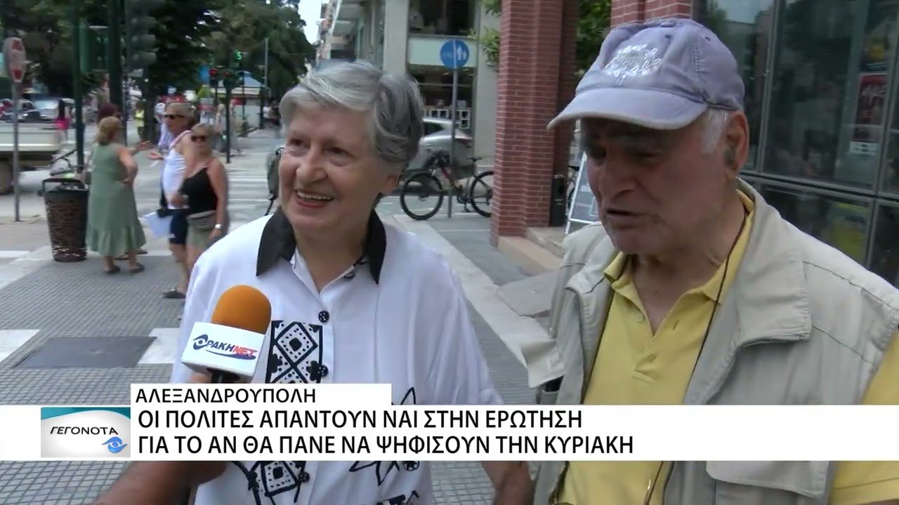 «Ναι» στην κάλπη της 25ης Ιουνίου λένε οι πολίτες που δηλώνουν στο ΘΡΑΚΗ ΝΕΤ πως θα πάνε να ψηφίσουν την Κυριακή. Ο χρόνος μετρά αντίστροφα, με την συγκεκριμένη εκλογική διαδικασία να διαφέρει πολύ από την προηγούμενη, λόγω του συστήματος της ενισχυμένης αναλογικής.