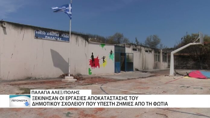 Αγώνας δρόμου για τον εργολάβο που ανέλαβε την αποκατάσταση του σχολείου της Παλαγίας μοιάζει το εγχείρημα καθώς ελάχιστες ημέρες απομένουν για την έναρξη της σχολικής χρονιάς. Το δημοτικό σχολείο της Παλαγίας υπενθυμίζεται πως υπέστη σοβαρές ζημιές από την πυρκαγιά που έφτασε μέσα στον οικισμό την περασμένη εβδομάδα.