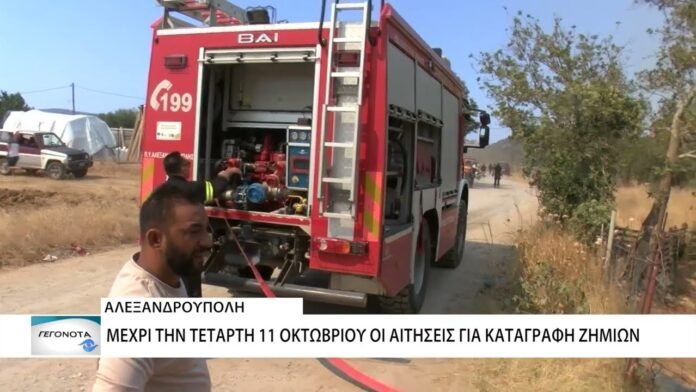 Συνεχίζονται καθημερινά οι αιτήσεις στο Δήμο Αλεξανδρούπολης, από τους πυρόπληκτους, για την καταγραφή των ζημιών που υπέστησαν. Διευκρινίζεται πως οι ζημιές στο εσωτερικό των σπιτιών καταγράφονται στο πολυκοινωνικό, ενώ στο εξωτερικό των σπιτιών στην Διεύθυνση Αποκατάστασης Επιπτώσεων Φυσικών Καταστροφών Βορείου Ελλάδος. Η υποβολή αιτήσεων θα διαρκέσει μέχρι και την Τετάρτη 11 Οκτωβρίου 2023