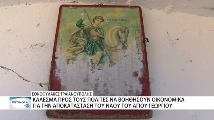 Το τάγμα Εθνοφυλακής Τραϊανούπολης, ανέλαβε την αποκατάσταση του Ναού του Αγίου Γεωργίου που κάηκε ολοσχερώς, μετά τις καταστροφικές πυρκαγιές που έπληξαν τον Έβρο. Παράλληλα, απευθύνει πρόσκληση για οικονομική βοήθεια αλλά και για την συμμετοχή εθελοντών που θα συμμετέχουν στις εργασίες αποκατάστασης.
