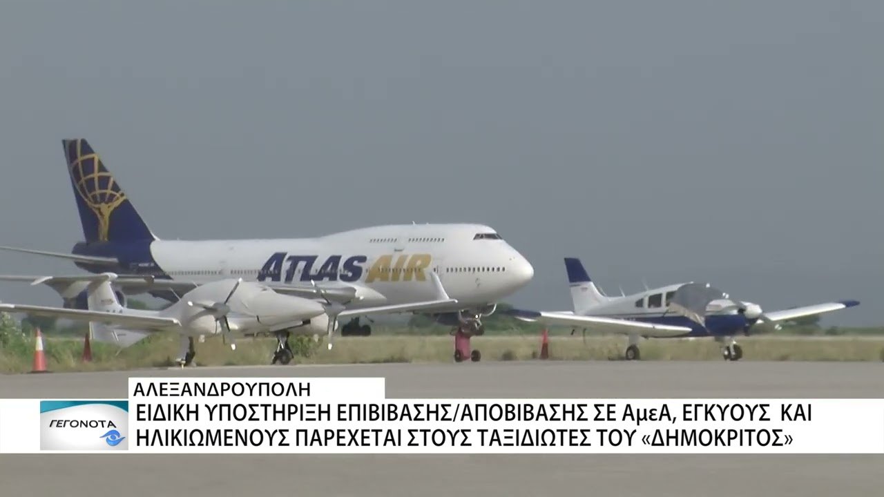 Συνεχίζεται να παρέχεται σε όλα τα κρατικά αεροδρόμια της χώρας, όπως και στο αεροδρόμιο Δημόκριτος της Αλεξανδρούπολης, η ειδική υπηρεσία βοήθειας για την επιβίβαση και αποβίβαση ατόμων με αναπηρία, ηλικιωμένων και εγκύων. Η ειδική μέριμνα γίνεται από τις αεροπορικές εταιρείες, για το σύνολο των πτήσεων και είναι δωρεάν.