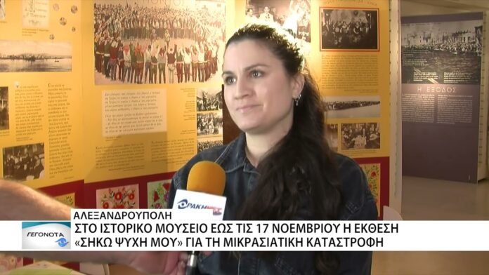 Έως και τις 17 Νοεμβρίου θα παραμείνει στο Ιστορικό Μουσείο της Αλεξανδρούπολης, η έκθεση για την μικρασιατική καταστροφή «Σήκω Ψυχή μου». Η έκθεση είχε δημιουργηθεί στο πλαίσιο των εκδηλώσεων μνήμης για τα 100 χρόνια από τη Μικρασιατική Καταστροφή και αφού παρουσιάστηκε σε διάφορες πόλεις της Ελλάδας, βρίσκεται και στην Αλεξανδρούπολη και είναι επισκέψιμη καθημερινά από τις 10:30 το πρωί έως τις 14:30 το μεσημέρι, εκτός από την Κυριακή και τη Δευτέρα.