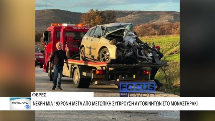 Θρήνος επικρατεί στην τοπική κοινότητα των Φερών Αλεξανδρούπολης, όπου το μεσημέρι της Κυριακής, μια 19χρονη κοπέλα, άφησε την τελευταία της πνοή στο δρόμο κοντά στο Μοναστηράκι, μετά από σφοδρό τροχαίο ατύχημα. Ειδικότερα, το αυτοκίνητο που οδηγούσε η 19χρονη εξετράπει της πορείας του, με αποτέλεσμα να συγκρουστεί μετωπικά με έτερο όχημα που οδηγούσε ένας 35χρονος. Από την σύγκρουση τραυματίστηκαν ελαφρά και οι 3 επιβάτες του έτερου οχήματος και μεταφέρθηκαν στο νοσοκομείο της Αλεξανδρούπολης.
