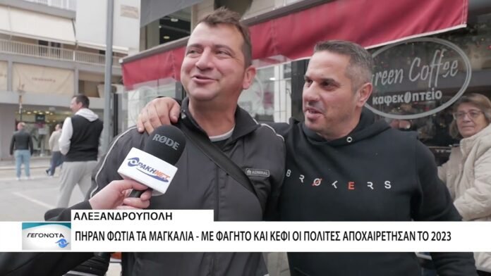 Με τα αναμμένα μαγκάλια, τα λουκάνικα, τα σουβλάκια και τις μπριζόλες οι Αλεξανδρουπολίτες αποχαιρετούν το 2023. Η παραμονή της πρωτοχρονιάς στην πρωτεύουσα του Έβρου , είχε άρωμα ψημένου κρέατος, ζωναντή μουσική σε κάθε γωνιά και άφθονο κόκκινο κρασί, αλλά και πολύ χορό μέχρι τις απογευματικές ώρες.