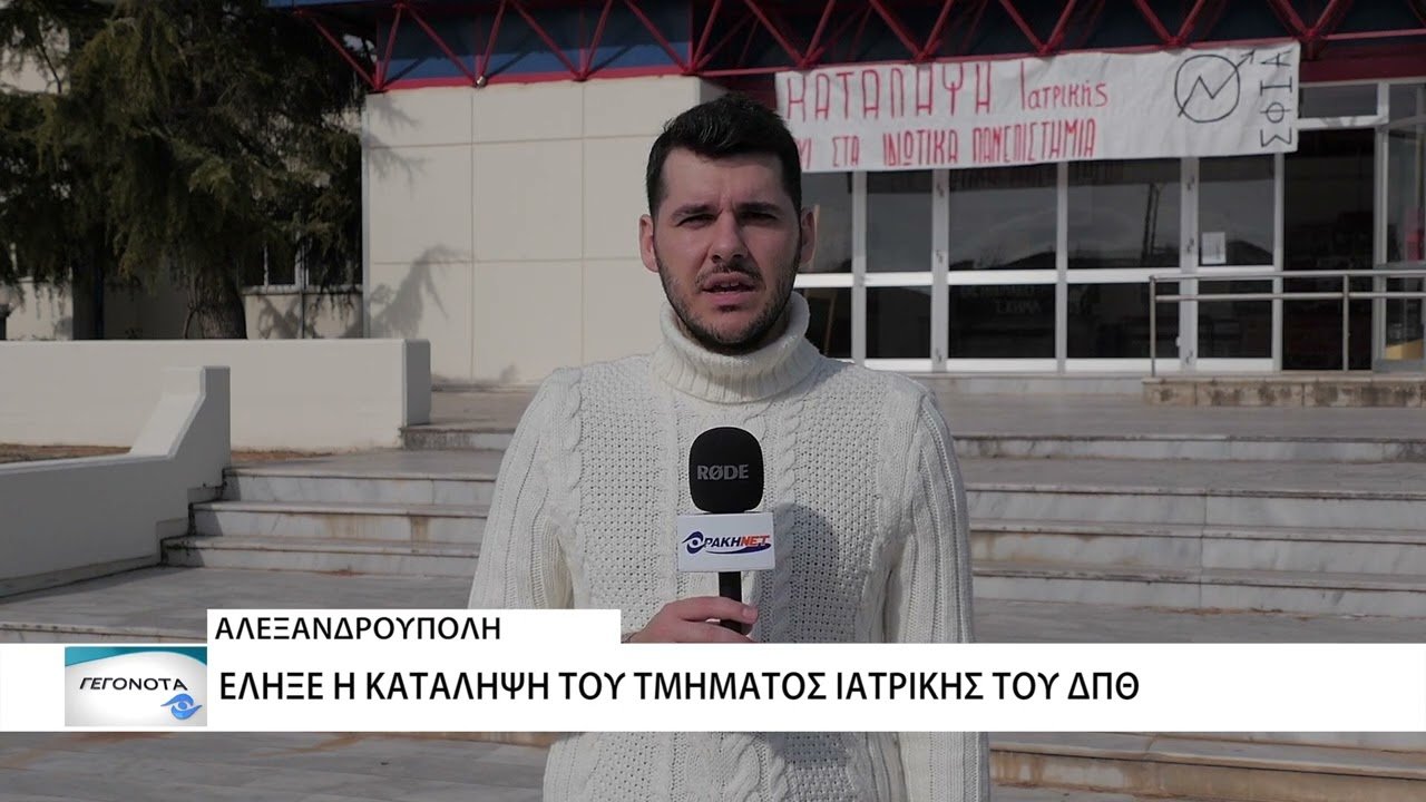 Έληξε η κατάληψη στο τμήμα Ιατρικής του Δημοκριτείου Πανεπιστημίου Θράκης με έδρα την Αλεξανδρούπολη, μετά από 5 ημέρες. Οι φοιτητές πραγματοποίησαν εχθές γενική συνέλευση το αποτέλεσμα της ψηφοφορίας έδειξε να μην συνεχιστεί η κατάληξη. Μετά από αυτήν την εξέλιξη, η εξεταστική περίοδος του τμήματος που είχε διακοπεί, συνεχίζεται κανονικά από την Πέμπτη 8 Φεβρουαρίου και μάλιστα με τα μαθήματα να εξετάζονται δια ζώσης.