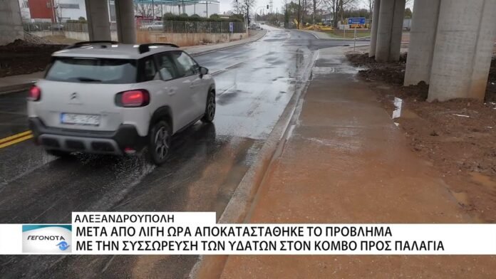 Η νεροποντή σήμερα το πρωί, ανέδειξε ορισμένα προβλήματα που παρουσιάζει ο δρόμος προς την Παλαγία στον ανισόπεδο κόμβο της νέας Περιφερειακή Οδού. Ο Δρόμος αυτός, δόθηκε μόλις πριν από 5 ημέρες στην κυκλοφορία. Αποτέλεσμα της βροχής και της περιορισμένης παροχέτευσης των ομβρίων από ένα φρεάτιο ήταν η συγκέντρωση μεγάλης ποσότητας νερού στο χαμηλότερο σημείο του δρόμου. Ωστόσο,σε λίγη ώρα κι αφού κόπασε η βροχή, το μοναδικό φρεάτιο, στράγγισε τα στάσιμα νερά .
