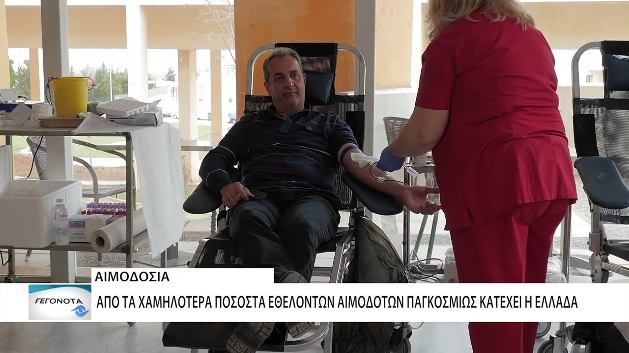 Πολύ χαμηλά σε ποσοστά αιμοδοσίας βρίσκεται η χώρα μας με την Ελλάδα εδώ και πολλά χρόνια να εισάγει αίμα από το εξωτερικό. Έκκληση στο υπουργείο υγείας να λάβει άμεσα μέτρα για την αντιμετώπιση των ελλείψεων αίματος απευθύνει το Διοικητικό Συμβούλιο της Ελληνικής Ομοσπονδίας Θαλασσαιμίας, καθώς υπάρχει μεγάλο ποσοστό πολιτών που πάσχει από χρόνια νοσήματα και έχει πολύ μεγάλες ανάγκες σε αίμα.