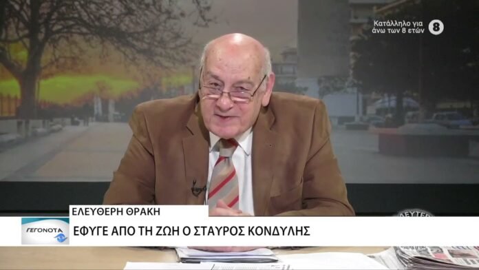 Έφυγε από τη ζωή ο Σταύρος Κονδύλης…Ιδιοκτήτης του δημοσιογραφικού Οργανισμού Κονδύλη και σύμβουλος έκδοσης της εφημερίδας ΕΛΕΥΘΕΡΗ ΘΡΑΚΗ. Ο Σταύρος Κονδύλης μέχρι και χθες βρισκόταν στις επάλξεις και παρουσίασε κανονικά την εβδομαδιαία του εκπομπή «Η 2η Ματιά». Μια αδιαθεσία τον οδήγησε στο νοσοκομείο όπου νοσηλεύθηκε και σήμερα έφυγε για το μεγάλο ταξίδι στη ΜΕΘ του ΠΓΝΑ.