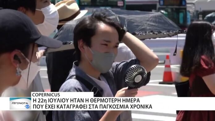 Η 22η Ιουλίου ήταν η θερμότερη ημέρα που έχει καταγραφεί στα παγκόσμια χρονικά, σύμφωνα με προκαταρκτικά στοιχεία της Υπηρεσίας της ΕΕ για την Κλιματική Αλλαγή «Κοπέρνικος» (Copernicus), ξεπερνώντας κατά ελάχιστα την Κυριακή 21 Ιουλίου.