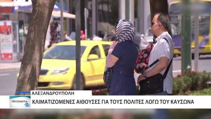 Στην Αλεξανδρούπολη άνοιξαν φέτος οι κλιματιζόμενοι χώροι για τους συμπολίτες μας, τους ηλικιωμένους, για τα παιδιά, τους άστεγους αλλά και για άτομα με καρδιολογικά προβλήματα. Για τις ευπαθείς ομάδες του πληθυσμού και τους αστέγους, κατά τη διάρκεια των επόμενων ημερών, θα παραμείνουν ανοικτά από ώρα 10:00 π.μ έως 20:00, κλιματιζόμενη αίθουσα, στο χώρο του Α’ ΚΑΠΗ Αλεξανδρούπολης, στην οδό Εθνικής Αντίστασης καθώς και το αμφιθέατρο του Δημοτικού καταστήματος Φερών.