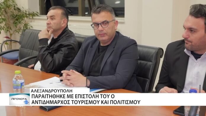 Την παραίτησή του από την Αντιδημαρχία Τουρισμού και Πολιτισμού υπέβαλε γραπτώς στον Δήμαρχο Αλεξανδρούπολης, Γιάννη Ζαμπούκη, ο Αντιδήμαρχος σε θέματα Τουρισμού και Πολιτισμού, κ. Κυριάκος Αετόπουλος.