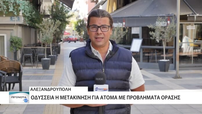 Ως μια καθημερινή Οδύσσεια θα μπορούσε να περιγραφεί η μετακίνηση των ανθρώπων που αντιμετωπίζουν προβλήματα όρασης στην Αλεξανδρούπολη. Τα ειδικά κίτρινα πλακάκια που έχουν τοποθετηθεί για την διευκόλυνση της μετακίνησης τους τις περισσότερες φορές οδηγούν πάνω σε τραπεζοκαθίσματα και άλλου είδους εμπόδια.