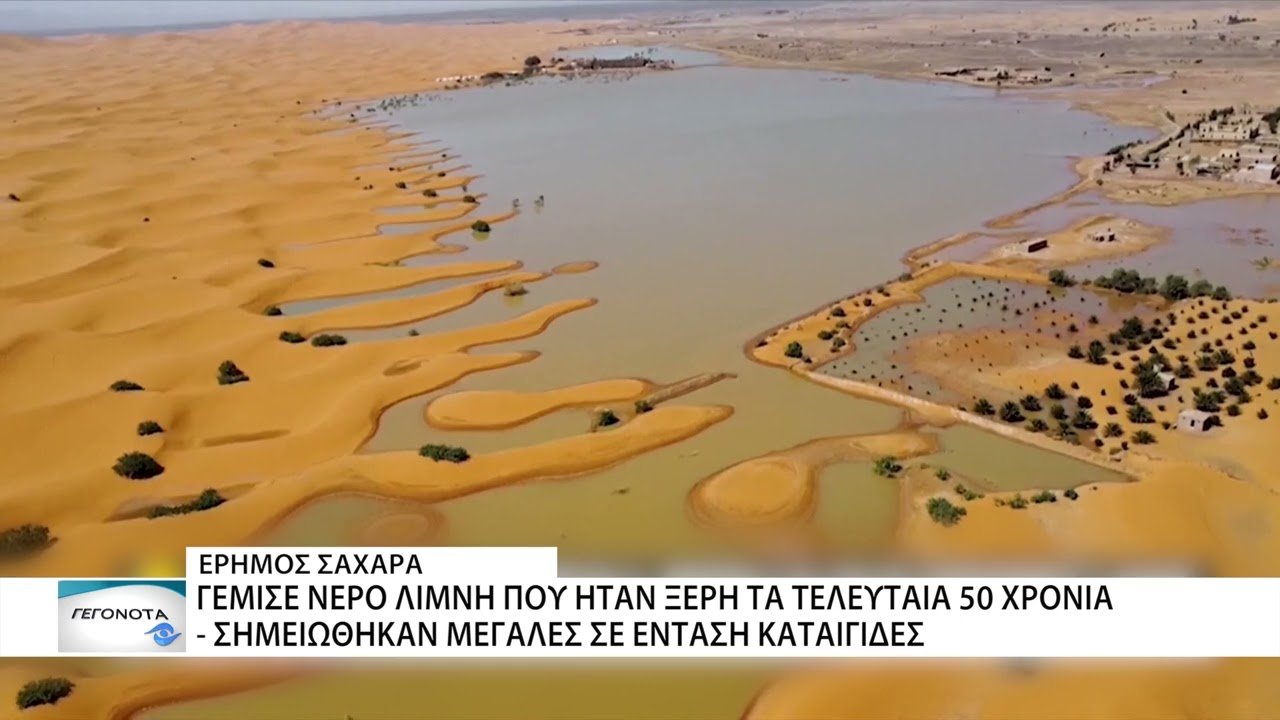 Ένα σπάνιο και ιδιαίτερο γεγονός παρατηρήθηκε στην έρημο Σαχάρα. Μετά από καταιγίδες που έπληξαν την περιοχή, είχαν ως συνέπεια να γεμίσουν νερό λίμνες που ήταν ξερές για περισσότερο από 50 χρόνια. Όπως ανακοίνωσε η κυβέρνηση του Μαρόκο, στις δύο ημέρες με καταιγίδες έπεσε τόσο νερό σε ορισμένες περιοχές όσο θα έπεφτε ολόκληρο τον χρόνο.