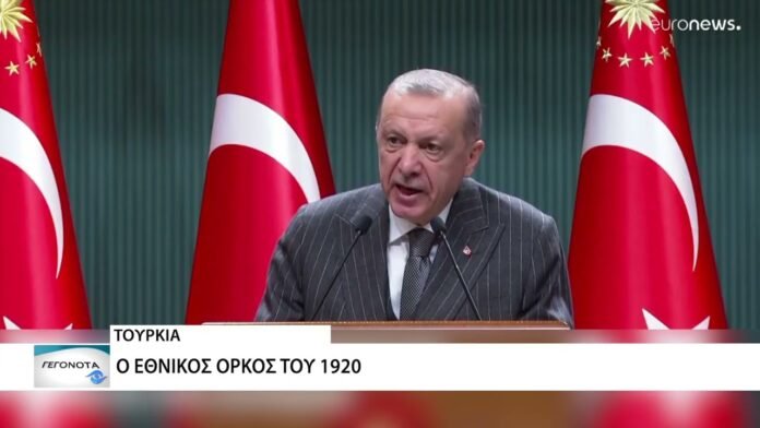 Οι τουρκικές προκλήσεις συνεχίζονται. Μέσα Ενημέρωσης της Τουρκίας, επανέφεραν τα σενάρια του χάρτη του «Εθνικού Όρκου» που περιλαμβάνει στο τουρκικό έδαφος την Δυτική Θράκη και νησιά του Αιγαίου.Μάλιστα, Τούρκοι αναλυτές σχολίαζαν τον χάρτη υποδεικνύοντας αρχικά, στα εδάφη της Συρίας που υπάγονται στη διακήρυξη.