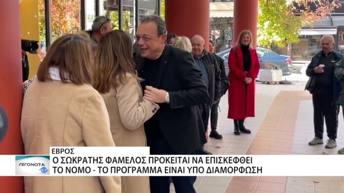 Για πρώτη φορά με την ιδιότητα του Προέδρου του ΣΥΡΙΖΑ – Προοδευτική Συμμαχία, ο Σωκράτης Φάμελλος πρόκειται να επισκεφθεί τον Έβρο την επόμενη εβδομάδα, σύμφωνα με ασφαλείς πληροφορίες. Η επίσκεψη γίνεται στο πλαίσιο προσπαθειών του ΣΥΡΙΖΑ να επανενωθεί με την κοινωνία και να καταγράψει τα προβλήματα του ακριτικού Έβρου.