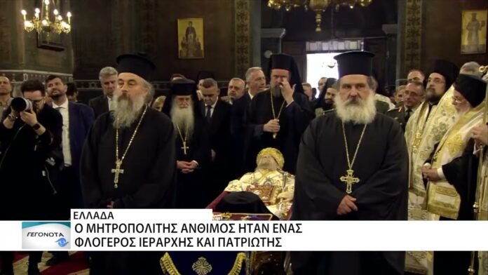 Προεξάρχοντος του Αρχιεπισκόπου Αθηνών και πάσης Ελλάδος Ιερώνυμου τελέστηκε το Σάββατο στις 12 το μεσημέρι στον Καθεδρικό και Προσκυνηματικό Ιερό Ναό της του Θεού Σοφίας, η εξόδιος ακολουθία του Μητροπολίτη πρώην Θεσσαλονίκης, Άνθιμου ο οποίος εκοιμήθη την Πέμπτη σε ηλικία 91 ετών.Απλός κόσμος, κληρικοί και εκπρόσωποι του πολιτικού χώρου έδωσαν το παρών, με τη συγκίνηση να είναι διάχυτη.