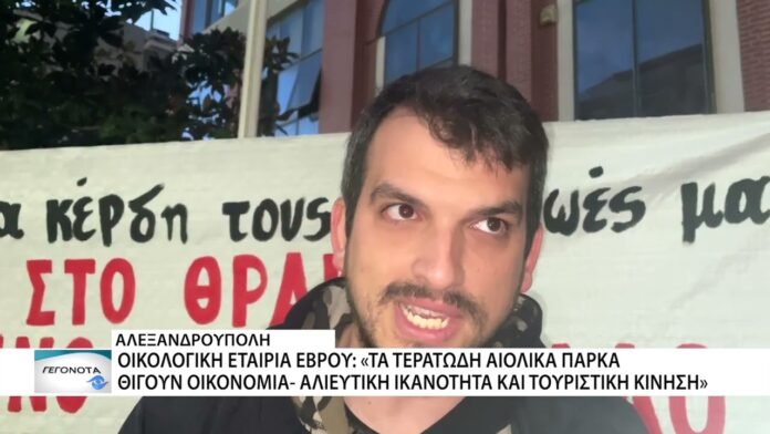 Παράσταση διαμαρτυρίας μπροστά από το δημαρχείο της Αλεξανδρούπολης με το σύνθημα “τα κέρδη τους ή οι ζωές μας” ενάντια στην δημιουργία αιολικών πάρκων, διοργάνωσαν, το απόγευμα της Δευτέρας, τα εργατικά σωματεία του Δήμου. Στο πλευρό τους βρέθηκαν εκπρόσωποι των αλιέων και της Οικολογικής Εταιρίας Έβρου.
