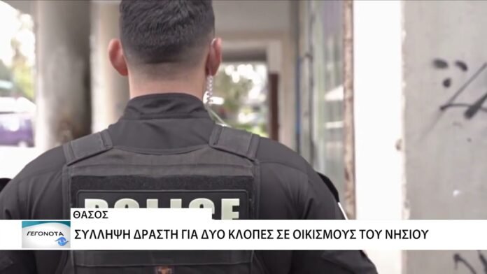 Το βράδυ του Σαββάτου συνελήφθη στη Θάσο από αστυνομικούς του Αστυνομικού Σταθμού Λιμεναρίων ένας ημεδαπός, διότι νωρίτερα διέρρηξε οικία ημεδαπού σε οικισμό της Θάσου. Ο δράστης αφαίρεσε από το εσωτερικό της χρηματικό ποσό, προσωπικά έγγραφα και διάφορα χρυσαφικά-κοσμήματα.