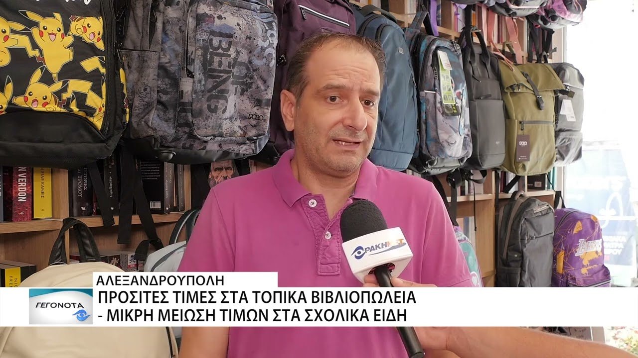 Ιδιαίτερα αυξημένη είναι η κίνηση στα βιβλιοπωλεία και τα καταστήματα με σχολικά είδη της πόλης της Αλεξανδρούπολης με την έναρξη της νέας σχολικής χρονιάς. Τα βιβλιοπωλεία στη Αλεξανδρούπολη εμφανίζονται έτοιμα να ανταποκριθούν στη ζήτηση που θα υπάρξει όταν και οι μαθητές πάρουν στα χέρια τους τη σχετική λίστα.
