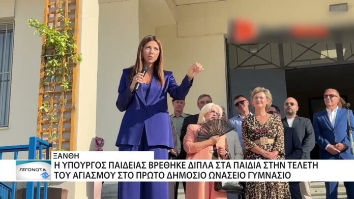 Στις 8:45 το πρωί τελέστηκε ο καθιερωμένος αγιασμός για την έναρξη της νέας σχολικής χρονιάς στο πρώτο Δημόσιο Ωνάσειο Γυμνάσιο Ξάνθης, παρουσία της Υπουργού Παιδείας, Θρησκευμάτων και Αθλητισμού Σοφίας Ζαχαράκη. Η υπουργός βρίσκεται σήμερα στην Ξάνθη προκειμένου να παραστεί σε αγιασμούς σχολικών μονάδων. Τον αγιασμό τέλεσε ο Σεβασμιώτατος Μητροπολίτης Ξάνθης κ.κ.Παντελεήμων.