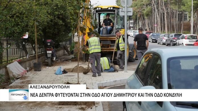 Η Αλεξανδρούπολη αποκτά ένα νέο “πνεύμονα” πρασίνου! Ο Δήμος Αλεξανδρούπολης, στο πλαίσιο της ανάπλασης της οδού Κονδύλη και της οδού Αγίου Δημητρίου προχώρησε στη φύτευση νέων δέντρων και θάμνων. Η πρωτοβουλία αυτή στοχεύει στην αισθητική αναβάθμιση της πόλης, την αύξηση του πρασίνου και τη δημιουργία ενός πιο βιώσιμου αστικού περιβάλλοντος.