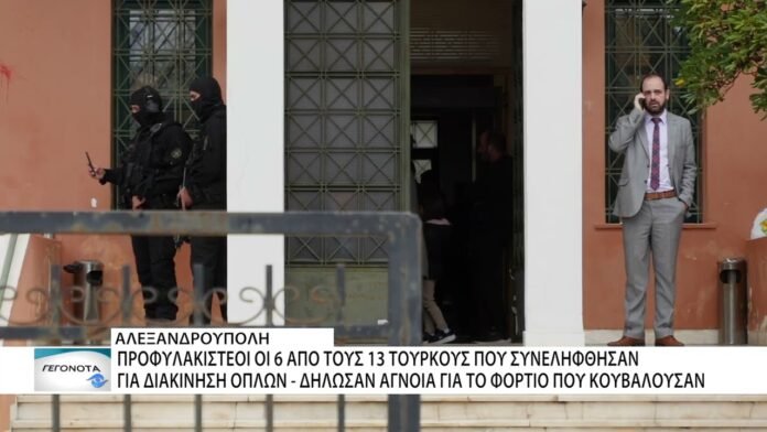 Ενώπιον του ανακριτή Αλεξανδρούπολης οδηγήθηκαν 11 Τούρκοι υπήκοοι, μεταξύ τους γυναίκες και ανήλικοι, κατηγορούμενοι για συμμετοχή σε εγκληματική οργάνωση και διακίνηση όπλων. Στην κατοχή τους βρέθηκαν 147 πιστόλια, γεμιστήρες και εξαρτήματα, που εκτιμάται πως προορίζονταν για συμμορίες. 6 από τους 13 προφυλακίστηκαν.
