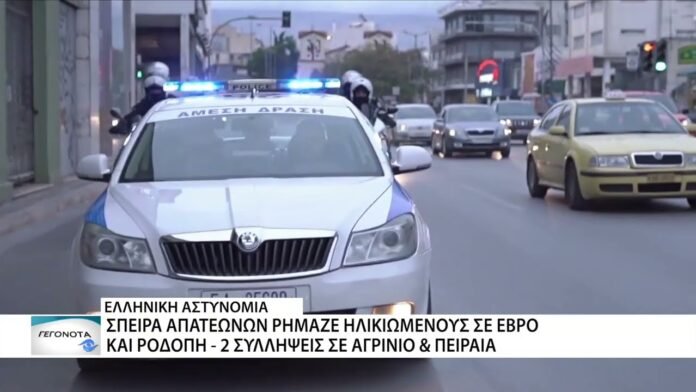 Στην εξιχνίαση έξι υποθέσεων εξαπάτησης ηλικιωμένων προχώρησαν οι αστυνομικές αρχές της Κομοτηνής, σε συνεργασία με συναδέλφους τους από την Αλεξανδρούπολη και την Ορεστιάδα. Οι απάτες σημειώθηκαν σε περιοχές της Ροδόπης και του Έβρου, με τους δράστες να αποσπούν χρήματα, κοσμήματα και χρυσές λίρες από ανυποψίαστους πολίτες, μέσω τηλεφωνικών εξαπατήσεων. Δύο μέλη της εγκληματικής ομάδας συνελήφθησαν σε Αγρίνιο και Πειραιά, ενώ ταυτοποιήθηκαν και οι συνεργοί τους.