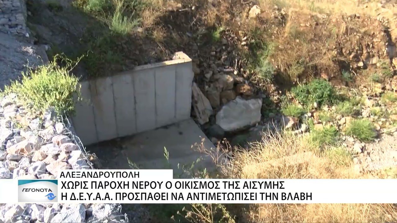 Μια βλάβη στη γεώτρηση νερού στην Αισύμη Αλεξανδρούπολης έχει προκαλέσει προβλήματα στην παροχή νερού στην περιοχή. Η Δημοτική Επιχείρηση Ύδρευσης Αποχέτευσης Αλεξανδρούπολης επενέβη άμεσα και προμήθευσε τους κατοίκους με εμφιαλωμένο νερό, διασφαλίζοντας την κάλυψη των αναγκών τους.