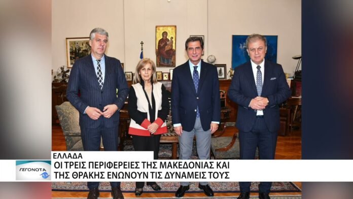 Τις δυνάμεις τους ενώνουν οι τρεις περιφέρειες της Μακεδονίας και τη Θράκης με στόχο να φτάσουν πιο κοντά στους πολίτες των 16 Περιφερειακών Ενοτήτων και να οικοδομήσουν γέφυρες συνεργασίας με τις γειτονικές της Ελλάδας χώρες. Η υλοποίηση της πρωτοβουλίας, που ανέλαβε το υπουργείο Εσωτερικών , ήταν το αντικείμενο της σύσκεψης που συγκάλεσε την Δευτέρα, ο αρμόδιος υφυπουργός Κωνσταντίνος Γκιουλέκας, στο Διοικητήριο της Θεσσαλονίκης, με του Περιφερειάρχες Κεντρικής Μακεδονίας Αθηνά Αηδονά, Ανατολικής Μακεδονίας – Θράκης Χριστόδουλο Τοψίδη και Δυτικής Μακεδονίας Γιώργο Αμανατίδη.