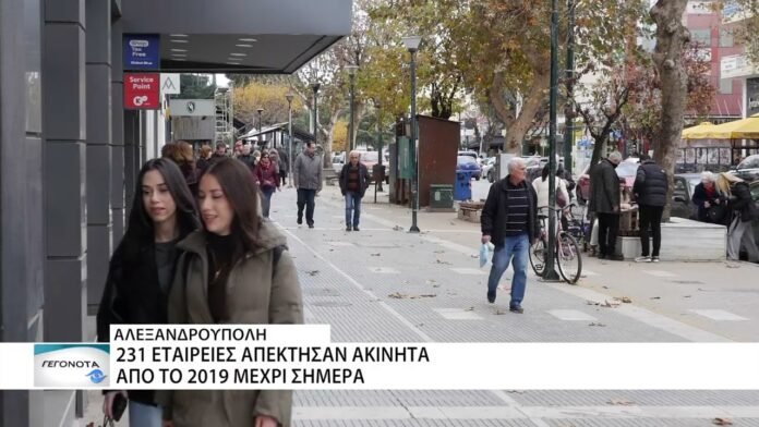 Συνολικά 231 εταιρείες εμφανίζονται να έχουν αποκτήσει ακίνητα στην Αλεξανδρούπολη την τελευταία πενταετία, όπως προκύπτει από απάντηση του Υφυπουργού Ψηφιακής Διακυβέρνησης στη Βουλή στον Βουλευτή Έβρου Πάρη Παπαδάκη. Ο Υφυπουργός σημείωσε πως αποτελεί αρμοδιότητα του Γενικού Εμπορικού Μητρώου η επαλήθευση της προέλευσης των εταιρειών αυτών.