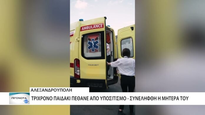 Μια τραγική ιστορία συγκλονίζει την Αλεξανδρούπολη, καθώς ένα τρίχρονο παιδί μεταφέρθηκε την Πέμπτη στο νοσοκομείο και αργότερα διαπιστώθηκε ο θάνατός του από ασιτία. Σύμφωνα με την ιατροδικαστική εξέταση, ο θάνατος του τρίχρονου παιδιού οφείλεται σε καρδιακή ανακοπή που προήλθε από σοβαρό και παρατεταμένο υποσιτισμό.