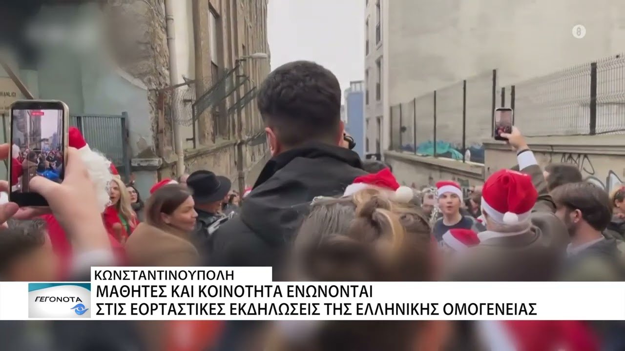 Χριστουγεννιάτικο κλίμα στους δρόμους της Κωνσταντινούπολης, καθώς μαθητές και εκπαιδευτικοί του Ζωγραφείου Λυκείου συμμετείχαν στις εορταστικές εκδηλώσεις της ελληνικής ομογένειας, τραγουδώντας τα παραδοσιακά κάλαντα έξω από το Ελληνικό Προξενείο