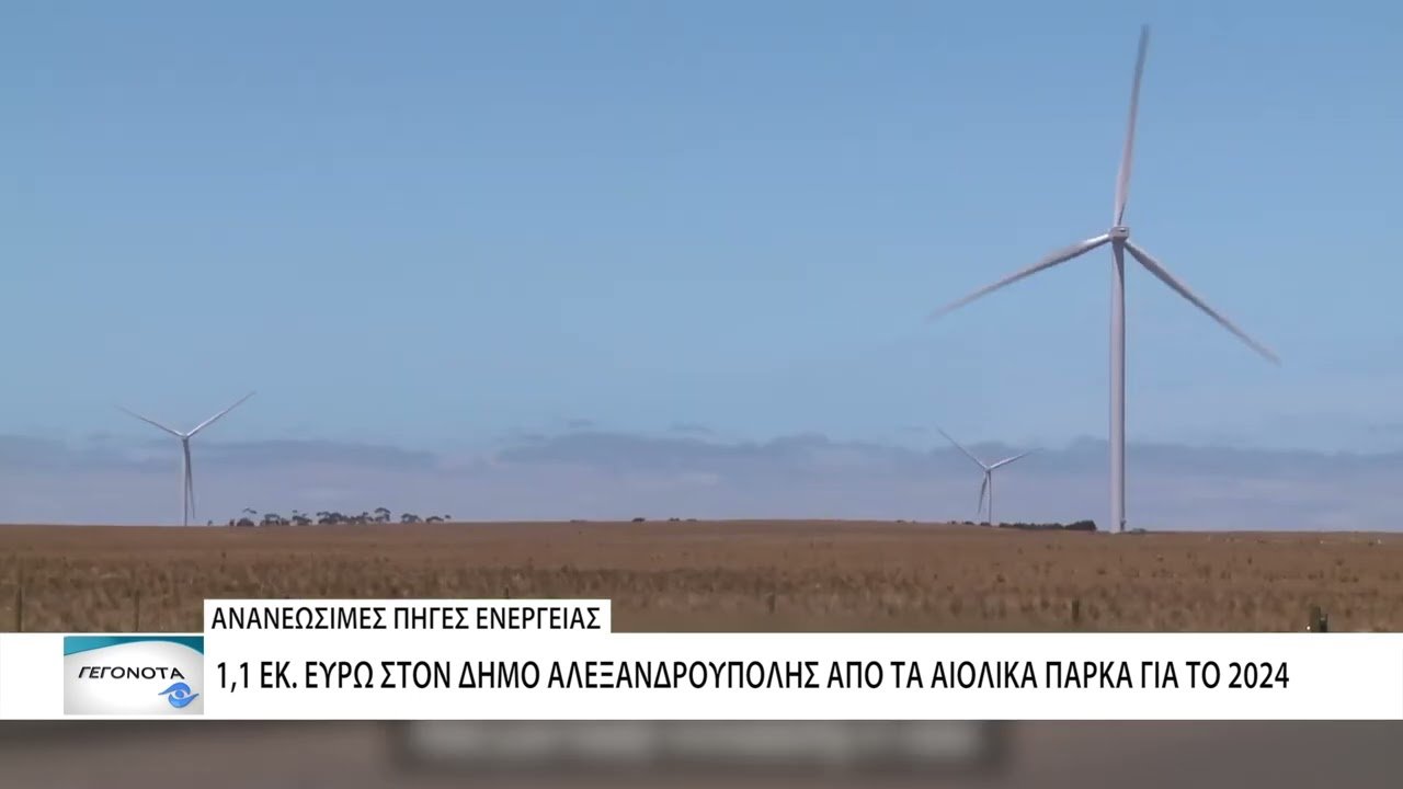 Ο Δήμος Αλεξανδρούπολης θα λάβει 1,1 εκατομμύρια ευρώ από ειδικό τέλος της ενέργειας από Ανανεώσιμες Πηγές για το 2024. Τα χρήματα προέρχονται κυρίως από αιολικά πάρκα και επιστρέφουν στις τοπικές κοινωνίες, μειώνοντας παράλληλα τους λογαριασμούς ρεύματος των κατοίκων.