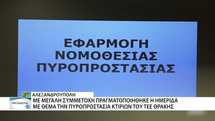 Με μεγάλη συμμετοχή πραγματοποιήθηκε η ημερίδα με θέμα Πυροπροστασία Κτιρίων, στη Δημοτική Βιβλιοθήκη Αλεξανδρούπολης, που διοργάνωσε το Περιφερειακό Τμήμα Θράκης του Τεχνικού Επιμελητηρίου Ελλάδας. Σκοπός της ημερίδας ήταν η εμπεριστατωμένη ενημέρωση των μηχανικών για το ισχύον θεσμικό πλαίσιο πυροπροστασίας κτιρίων, καθώς και για τον τρόπο ορθής εφαρμογής των προβλεπόμενων διαδικασιών στην πράξη.