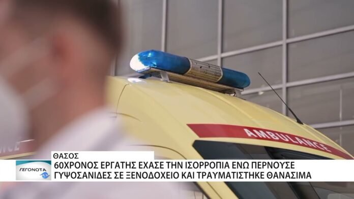Θάσος: 60χρονος έχασε την ισορροπία του και τραυματίστηκε θανάσιμα ενώ εργαζόταν σε ξενοδοχείο
