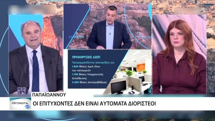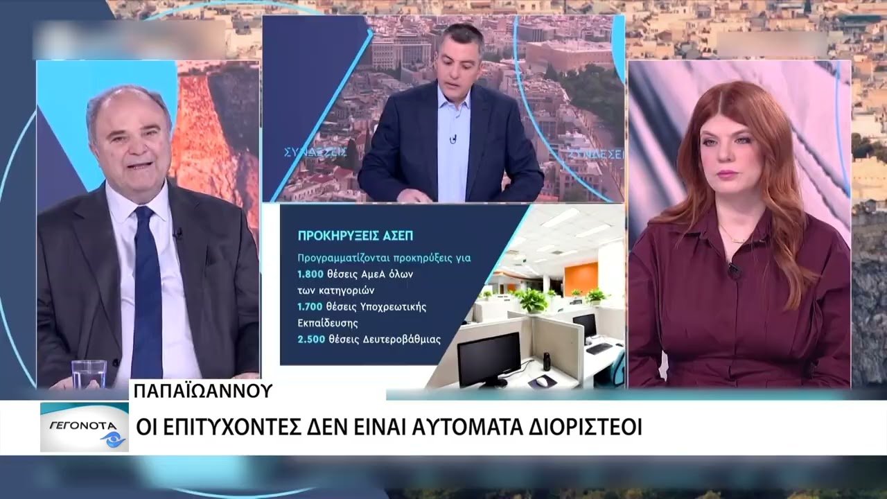 Ο Πρόεδρος του ΑΣΕΠ, Θάνος Παπαϊωάννου, ανακοίνωσε τον προγραμματισμό προκήρυξης πάνω από 17.000 θέσεων μέσω ΑΣΕΠ για το 2026. Διευκρίνισε ότι οι επιτυχόντες δεν είναι αυτομάτως διοριστέοι, ενώ μίλησε και για ενδεχόμενο επιμήκυνσης του χρόνου του διαγωνισμού.