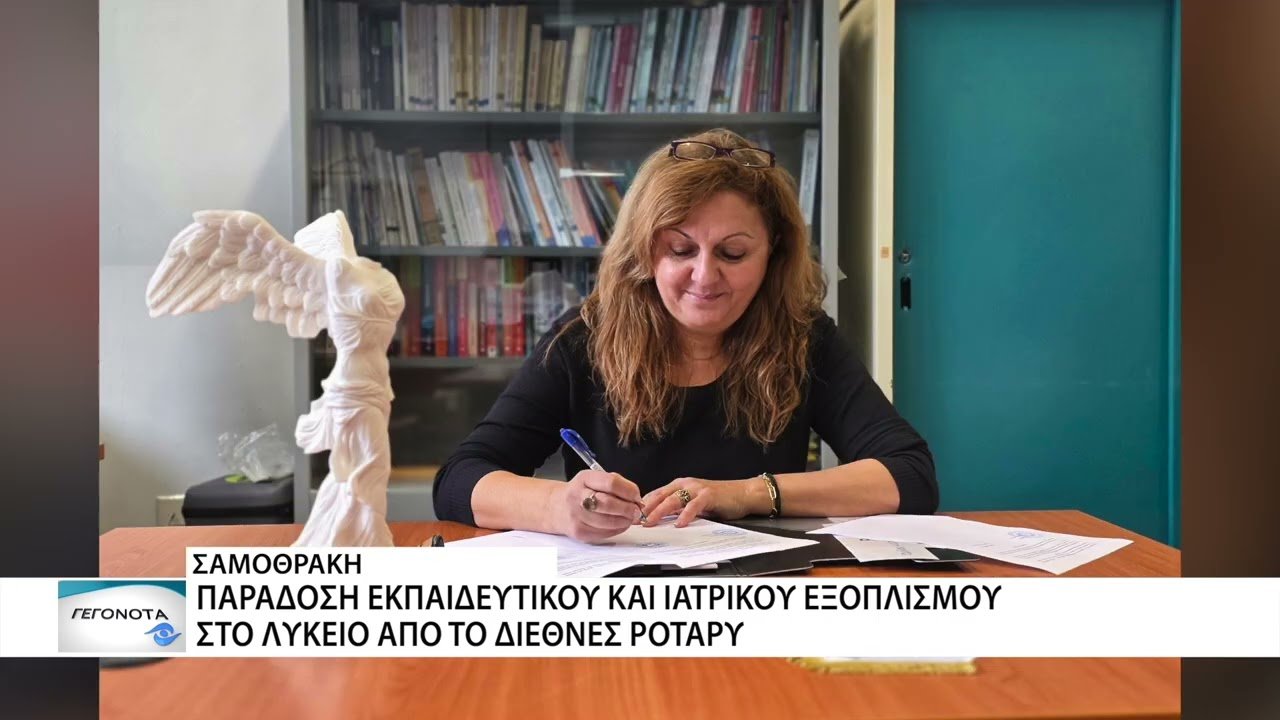 Σημαντική ενίσχυση για το Λύκειο Σαμοθράκης, μέσα από πρόγραμμα του Διεθνούς Ρόταρυ, με την παράδοση εκπαιδευτικού και ιατρικού εξοπλισμού που αναβαθμίζει την καθημερινότητα και την ασφάλεια της σχολικής κοινότητας.