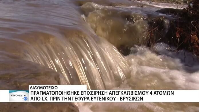 Επιχείρηση απεγκλωβισμού 4 ατόμων από ΙΧ που ακινητοποιήθηκε σε κλειστή γέφυρα πραγματοποιήθηκε το μεσημέρι της Παρασκευής στο Διδυμότειχο. Να σημειωθεί ότι ο χώρος ήταν κλειστός με απαγορευτική σήμανση λόγω της υπερχείλισης του ποταμού στην περιοχή