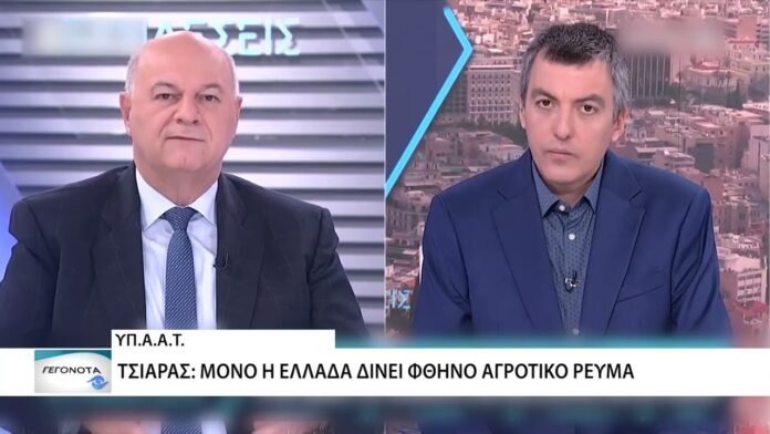 «Στο ΕΡΤnews και στην εκπομπή «Συνδέσεις», ο Υπουργός Αγροτικής Ανάπτυξης, Κώστας Τσιάρας, μίλησε για τις δυσκολίες της φετινής χρονιάς στον αγροτικό τομέα, για το αγροτικό ηλεκτρικό ρεύμα, καθώς και τη συμφωνία MERCOSUR και στις δικλείδες ασφαλείας που ζητήθηκαν για τα εισαγόμενα προϊόντα. Η συνέντευξη έγινε με φόντο το 48-ωρο πανελλαδικό μπλόκο των αγροτών για τις ημέρες Πέμπτη και Παρασκευή, κατόπιν της ανακοίνωσης των 6 μέτρων εξειδίκευσης