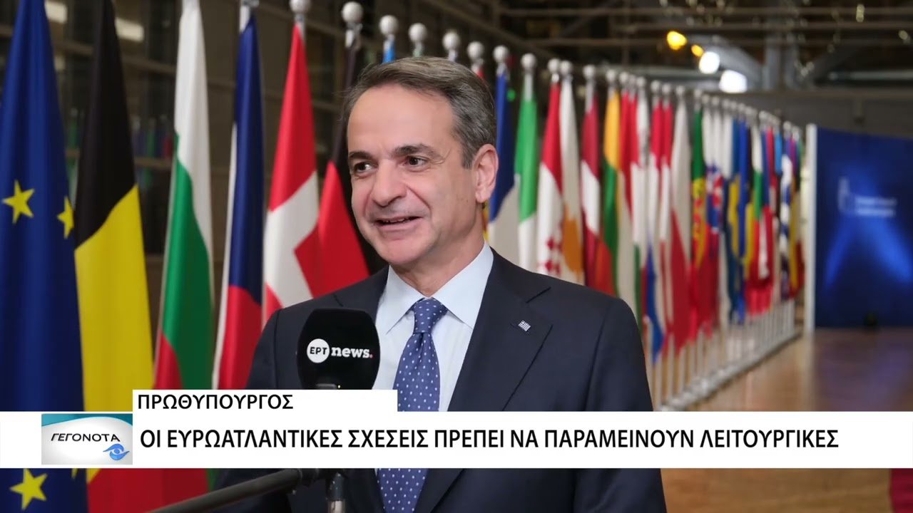 Ο Κυριάκος Μητσοτάκης από τις Βρυξέλλες όπου πραγματοποιήθηκε το έκτακτο Ευρωπαϊκό Συμβούλιο μίλησε για τις σχέσεις Ευρωπαϊκής Ένωσης – Ηνωμένων Πολιτειών, εν μέσω αυξημένης μεταβλητότητας στις διατλαντικές σχέσεις.