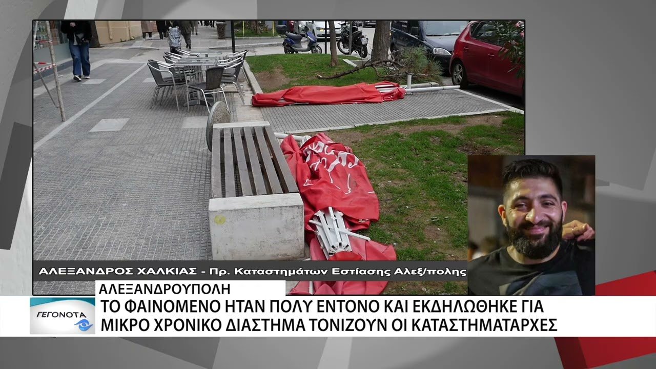 Ο πρόσφατος ανεμοστρόβιλος που έπληξε την Αλεξανδρούπολη προκάλεσε σημαντικές ζημιές σε καταστήματα εστίασης και καφέ. Ο ισχυρός άνεμος με ριπές που ξεπέρασαν τα 150 χιλιόμετρα την ώρα έσπασε τζαμαρίες και προκάλεσε πανικό σε εστιατόρια και καφετέριες.