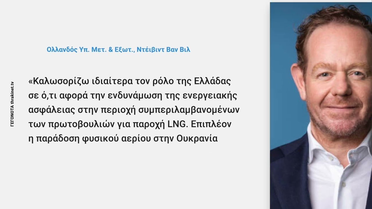 Επίσκεψη στον φράχτη των συνόρων στον Έβρο και στο ΚΥΤ Φυλακίου πραγματοποίησε ο Ολλανδός υπουργός Μετανάστευσης και Εξωτερικών Ντέιβιντ βαν Βιλ, όπου ενημερώθηκε για τη φύλαξη των ευρωπαϊκών συνόρων και τη δράση του Frontex. Σε δηλώσεις του υπογράμμισε τον κομβικό ρόλο της Ελλάδας στη μεταναστευτική πολιτική και την ανάγκη ενίσχυσης της ευρωπαϊκής συνεργασίας για την ασφάλεια και τη σταθερότητα.