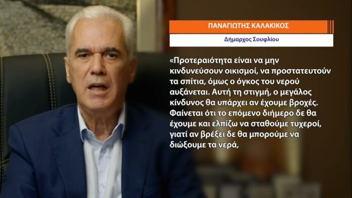 Σε κατάσταση πολιορκίας από τα νερά του ποταμού βρίσκεται ο Δήμος Σουφλίου, με εξήντα χιλιάδες στρέμματα αγροτικής γης να έχουν μετατραπεί σε απέραντη λίμνη. Ο δήμαρχος Παναγιώτης Καλακίκος προειδοποιεί για τον κίνδυνο μετά τη θραύση των αναχωμάτων σε Κορνοφωλιά και Μάνδρα, δίνοντας απόλυτη προτεραιότητα στη θωράκιση των οικισμών.