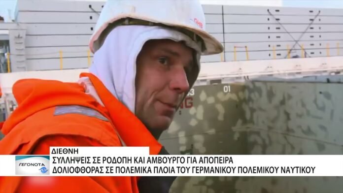Δύο άτομα, ένας 55χρονος Έλληνας στη Ροδόπη και ένας 37χρονος Ρουμάνος στο Αμβούργο, συνελήφθησαν στο πλαίσιο διακρατικής έρευνας για απόπειρα δολιοφθοράς σε πλοία του Γερμανικού Ναυτικού, έπειτα από ευρωπαϊκό ένταλμα Οι αρχές εξετάζουν ενέργειες που θα μπορούσαν να προκαλέσουν σοβαρές ζημιές στα πλοία, ενώ κατασχέθηκαν ηλεκτρονικά μέσα και τραπεζικά στοιχεία. Οι έρευνες συνεχίζονται σε τρεις χώρες.