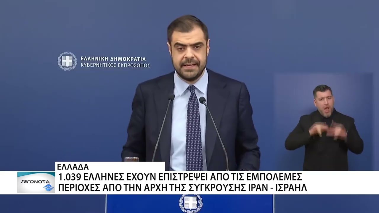 Σημαντική πρόοδος έχει σημειωθεί στην προσπάθεια επαναπατρισμού Ελλήνων πολιτών από τη Μέση Ανατολή, μετά την έναρξη του πολέμου στην περιοχή. Σύμφωνα με τον Κυβερνητικό Εκπρόσωπο Παύλο Μαρινάκη, 1039 Έλληνες έχουν επαναπατριστεί μέχρι στιγμής.
