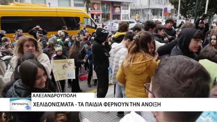 Τα “Χελιδονίσματα” επέστρεψαν για μια ακόμη χρονιά στην Αλεξανδρούπολη. Μαθητές από σχολεία της περιοχής γέμισαν την πόλη με παιδικές φωνές και μελωδίες, τραγουδώντας τα κάλαντα της άνοιξης και μεταφέροντας μήνυμα αισιοδοξίας και αναγέννησης.