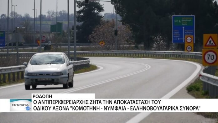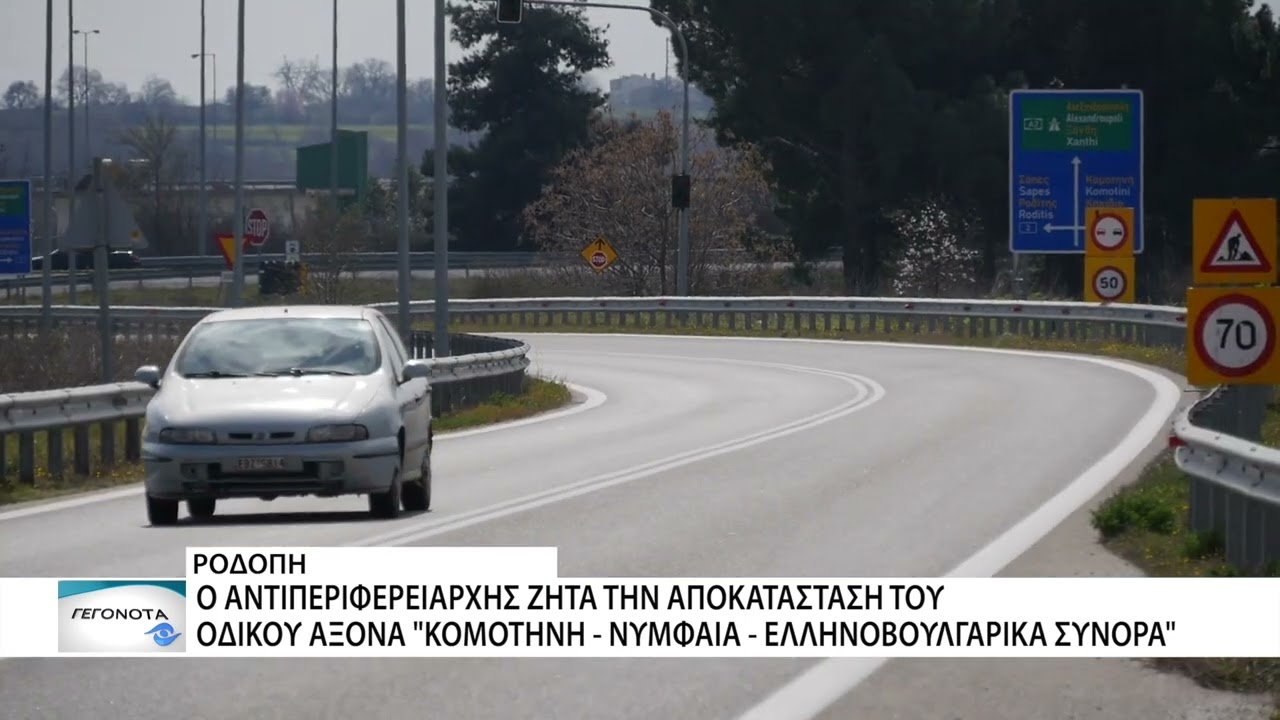 Ο Αντιπεριφερειάρχης Ροδόπης, κ. Εμμανουήλ Ταπατζάς, ζήτησε με επιστολή του από την Εγνατία Οδό . να αναλάβει άμεση δράση για την αποκατάσταση και συντήρηση του οδικού άξονα “Κομοτηνή – Νυμφαία – Ελληνοβουλγαρικά Σύνορα”. Ο επαρχιακός δρόμος που χρησιμοποιείται ως εναλλακτική διαδρομή λόγω των εργασιών στον άξονα Κομοτηνή – Νυμφαία, τονίζεται ως επικίνδυνος από τον Αντιπεριφερειάρχη Ροδόπης.